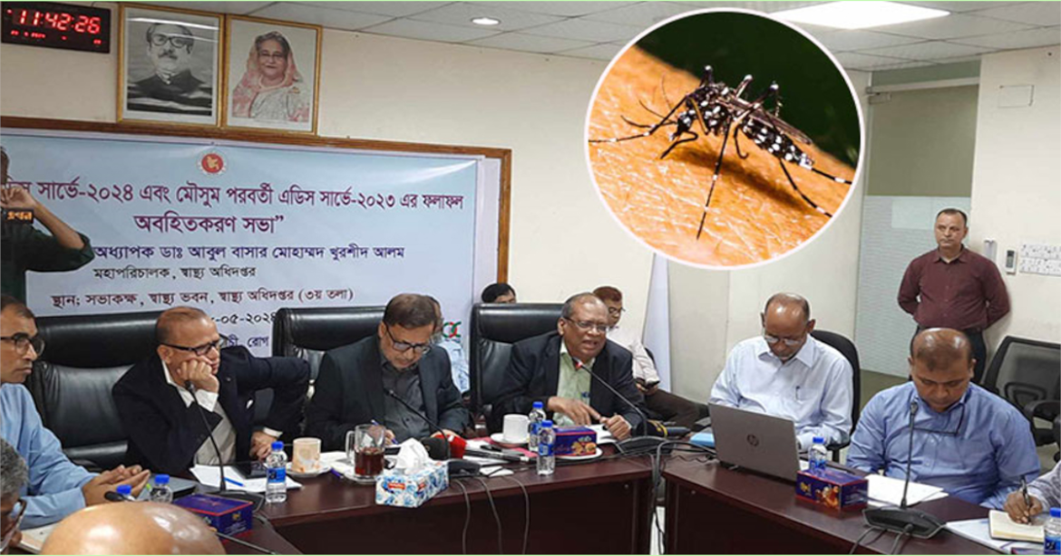 মঙ্গলবার (২৮ মে) সকালে রাজধানীর স্বাস্থ্য অধিদপ্তরে আয়োজিত মৌসুম পূর্ব এডিস সার্ভে–২০২৪ এর ফলাফল প্রকাশ অনুষ্ঠানে জরিপের তথ্য উপস্থাপন করা হয়।