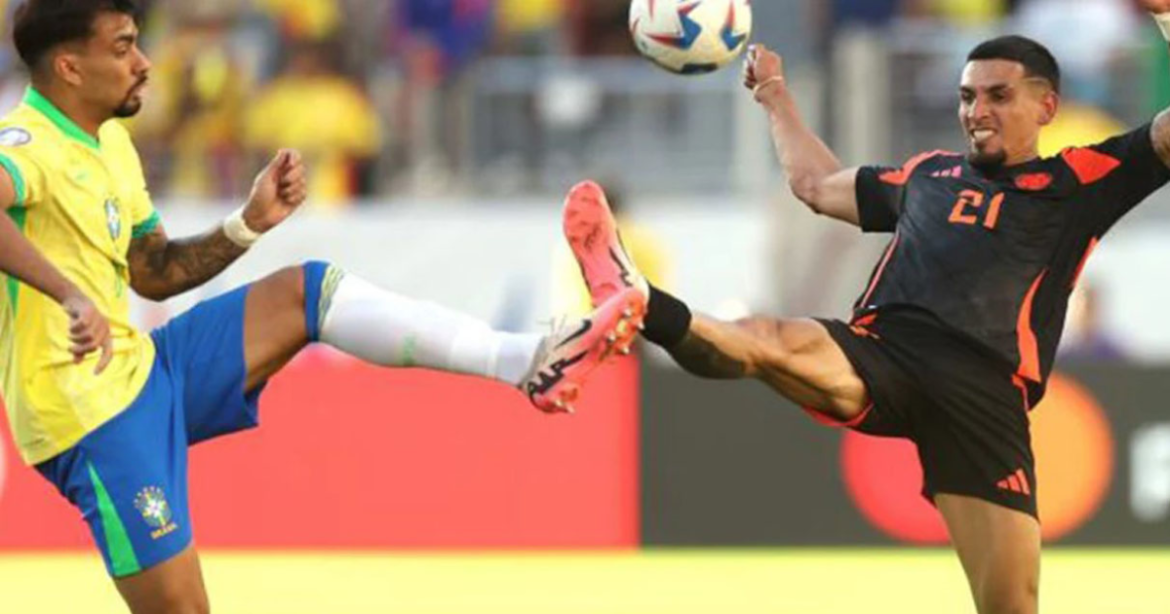 ম্যাচের শুরুতেই গোল করে লিড নেয় ব্রাজিল। ১২তম মিনিটে বাঁ–পায়ের দুর্দান্ত এক ফ্রি কিক থেকে কলম্বিয়ার জালে বল জড়িয়ে দেন বার্সেলোনা তারকা রাফিনহা। পিছিয়ে পরে পরিশোধে মরিয়া হয়ে উঠে কলম্বিয়া। একের পর এক আক্রমণ চালায় তারা। প্রথমার্ধে বাড়ানো সময়ে গোল করে দলকে সমতায় ফেরান কলম্বিয়ার ফুলব্যাক ড্যানিয়েল মুনোজ।