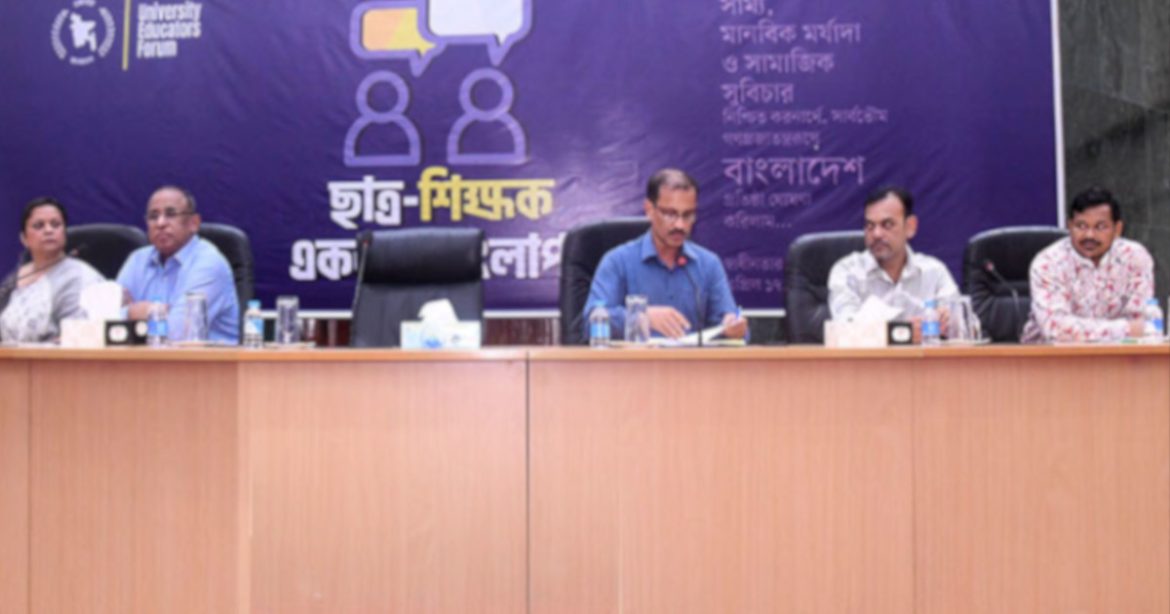ঢাকা বিশ্ববিদ্যালয়ে শিক্ষার্থী ও শিক্ষকদের মধ্যে সম্পর্কের উন্নয়নের লক্ষ্যে একটি বিশেষ সংলাপ অনুষ্ঠিত হয়েছে। রবিবার (২২ সেপ্টেম্বর) নবাব নওয়াব আলী চৌধুরী সিনেট ভবনে এই সংলাপের আয়োজন করে ইউনিভার্সিটি এডুকেটরস ফোরাম।