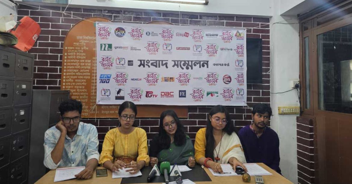 এতে লিখিত বক্তব্য পাঠ করেন ঢাকা বিশ্ববিদ্যালয় সাংস্কৃতিক সংসদের প্রচার সম্পাদক প্রকৃতি শ্যামলিমা।