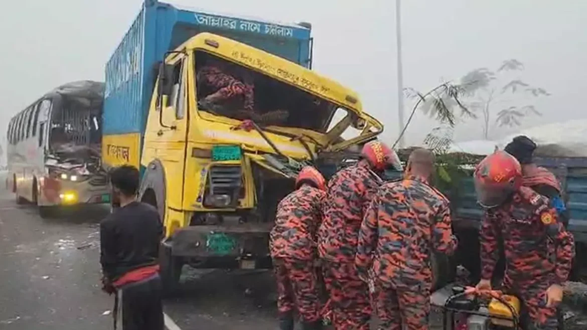 সোমবার (১৭ ফেব্রুয়ারি) ভোরে ঘন কুয়াশার কারণে একটি গাড়ি আরেকটি গাড়ির পেছনে ধাক্কা দিলে এ দুর্ঘটনা ঘটে।