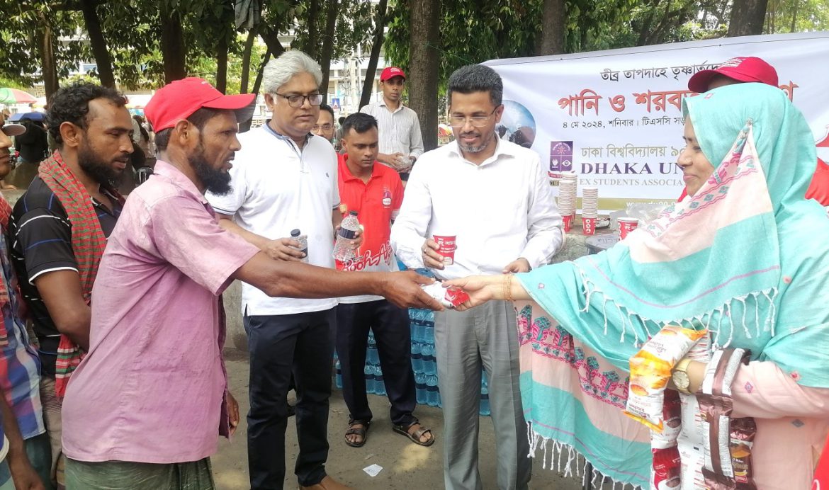 ঢাকা বিশ্ববিদ্যালয় ৯০–৯১ ব্যাচের সতীর্থদের উদ্যোগে সর্বস্তরের মানুষদের বিশুদ্ধ পানি, রুহ্ আফজা শরবত ও বিস্কুট দিয়ে আপ্যায়ন করা হয়েছে।