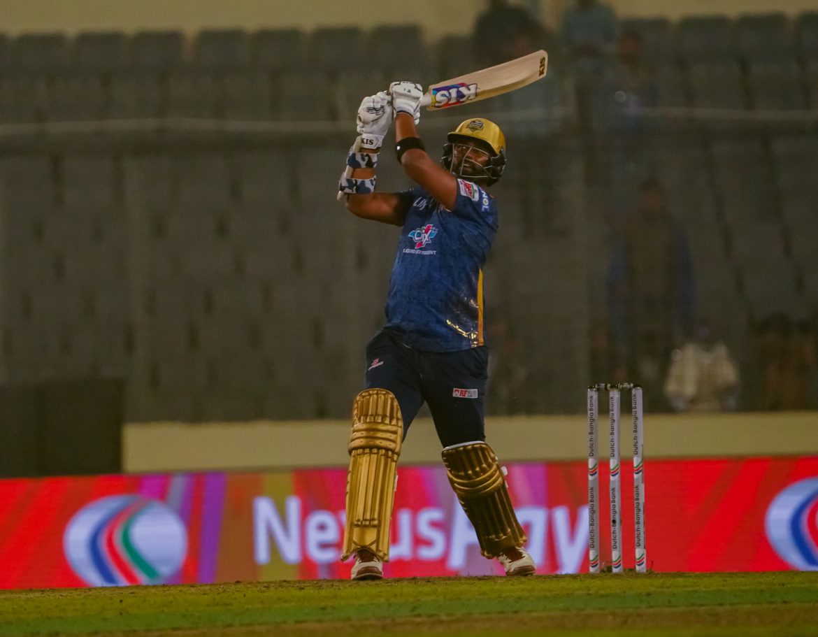 জবাবে, ৪১ রানে ৬ উইকেট হারিয়ে চাপে পড়ে ঢাকা ক্যাপিটাল। সপ্তম উইকেটে থিসার পেরেরা–চতুরঙ্গ ডি সিলভা‘র ১১২ রানের অপরাজিত জুটিতে, জয়ের স্বপ্ন দেখতে থাকে স্বাগতিকরা। পেরেরা সেঞ্চুরি হাঁকালেও জেতাতে পারেননি দলকে। ৬ উইকেটে ১৫৩ রানে থামে তাদের ইনিংস।