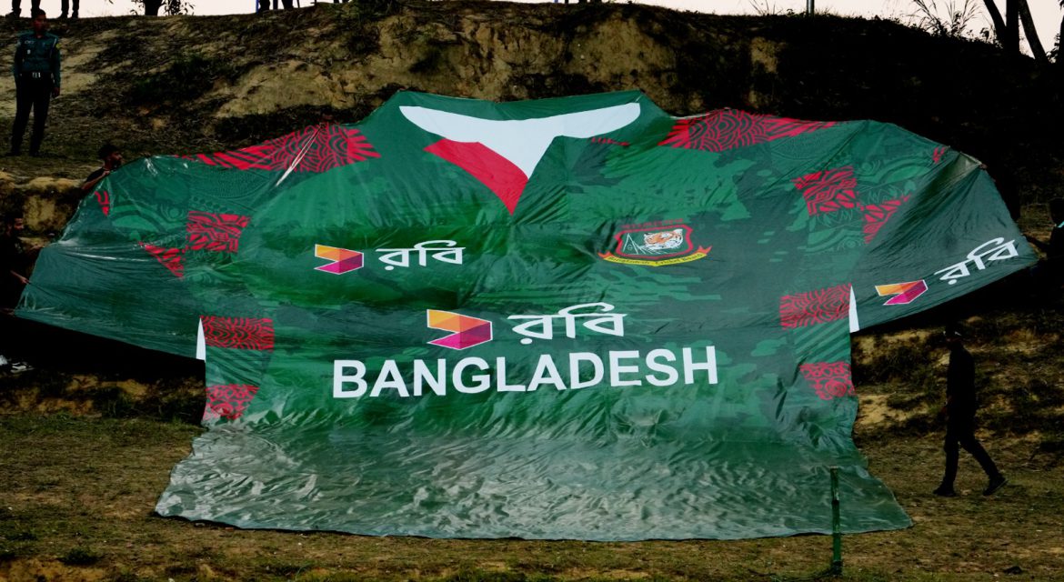 দর্শক গ্যালারিতে এক বিরাট আকৃতির বাংলাদেশের নতুন জার্সি