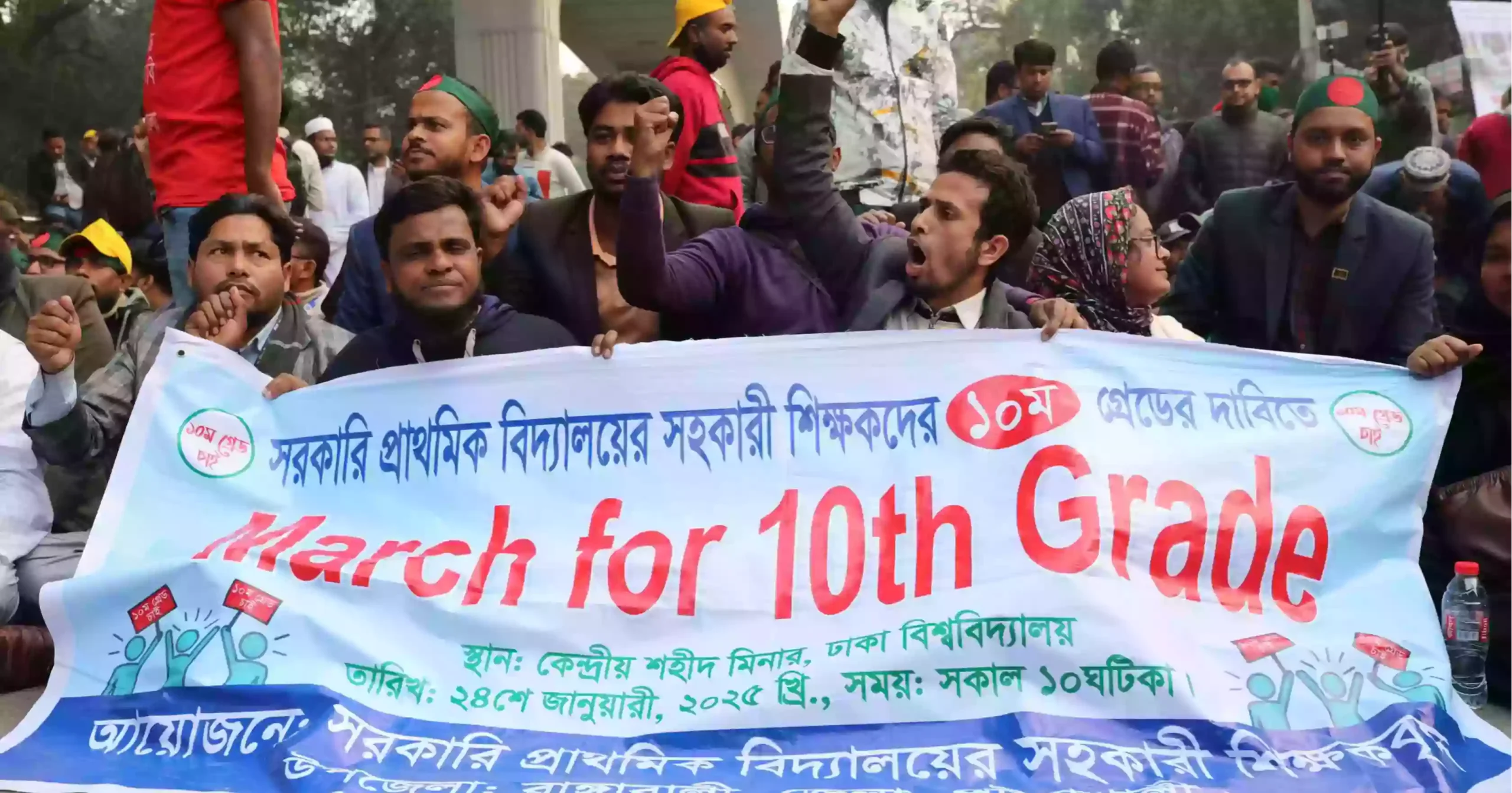 আন্দোলন চলার সময় এক শিক্ষক ঘোষণায় বলেন, ‘আমাদের তৃতীয় শ্রেণির কর্মচারী হিসেবে বেতন দেওয়া হয়, যা আমরা শিক্ষক হিসেবে মেনে নিতে পারি না। দশম গ্রেড আমাদের দাবি।’