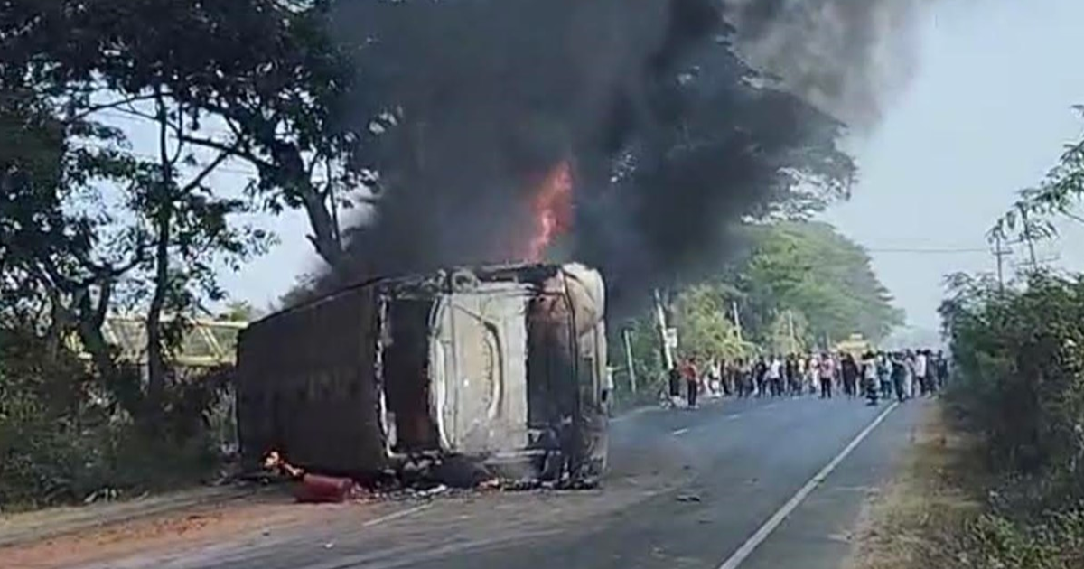স্থানীয় সূত্র জানায়, ঢাকা থেকে চট্টগ্রামগামী সিডিএম পরিবহনযাত্রীবাহী একটি বাস নিয়ন্ত্রণ হারিয়ে মহাসড়কে উল্টে আগুন ধরে যায়। এ সময় ব্যাটারিচালিত রিকশা ও মোটরসাইকেলের সঙ্গে বাসের সংঘর্ষ হয়। দগ্ধ হয়ে ৪ জনের মৃত্যু হয় এবং অন্তত ৩০ জন আহত হন।