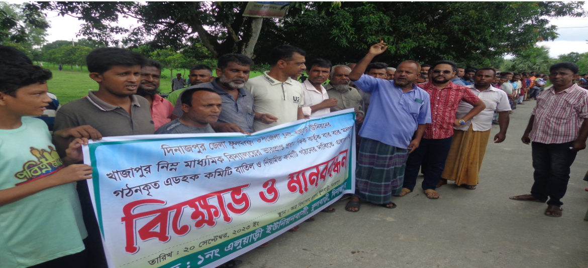 দিনাজপুর ফুলবাড়ীর এলুয়াড়ী ইউপির খাজাপুর মাধ্যমিক বিদ্যালয়ের এডহক কমিটি বাতিলের দাবিতে এলাকাবাসী বিক্ষোভ ও মানববন্ধন করেছে।