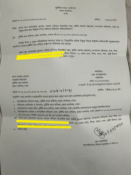 আলহামদুলিল্লাহ, দীর্ঘ ১১ মাসের অনুসন্ধানের পর দুদক প্রতিবেদন প্রদান করেছে, আমাকে সকল অভিযোগ থেকে মুক্তি দিয়েছে। ‘দুর্নীতি ও তদবির–বাণিজ্যের‘ অভিযোগের প্রেক্ষিতে বিন্দুমাত্র প্রমাণ না পেয়ে দুদক স্বসম্মানে আমাকে নিষ্পত্তিপত্র বুঝিয়ে দিয়েছে।