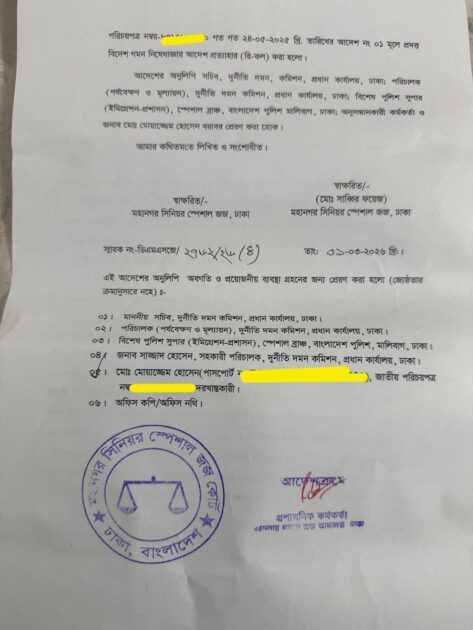 শুক্রবার (৬ মার্চ) নিজ ফেসবুক পোস্টে মোয়াজ্জেম হোসেন এ তথ্য জানান।