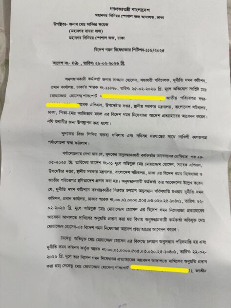 ‘দুর্নীতি ও তদবির–বাণিজ্য’–সংক্রান্ত অভিযোগের বিষয়ে কোনো প্রমাণ না পাওয়ায় দুদক নিষ্পত্তিপত্র দিয়েছে বলে দাবি করেন মোয়াজ্জেম হোসেন।