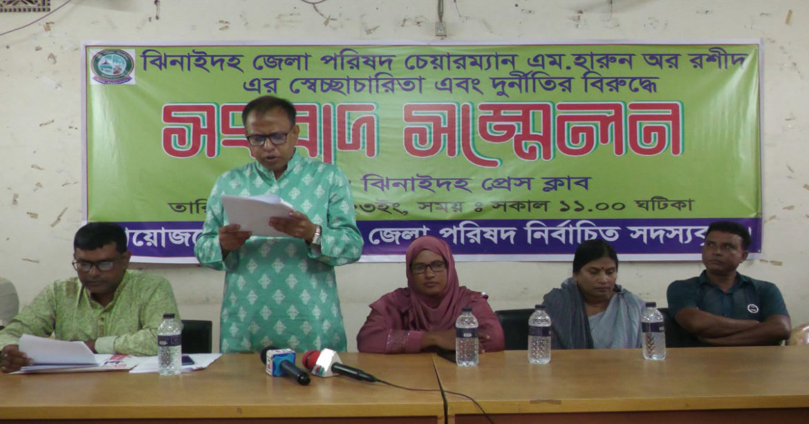 ঝিনাইদহ জেলা পরিষদ চেয়ারম্যান এম হারুন অর রশিদের বিরুদ্ধে দুর্নীতি, আর্থিক অনিয়ম ও চরম সেচ্ছাচারিতার অভিযোগ তুলে সংবাদ সম্মেলন করা হয়।