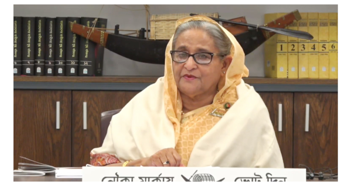 রাজধানীর তেজগাঁওয়ে ঢাকা জেলা আওয়ামী লীগের কার্যালয় থেকে ভার্চুয়ালি যুক্ত ছিলেন আওয়ামী লীগ সভাপতি শেখ হাসিনা।