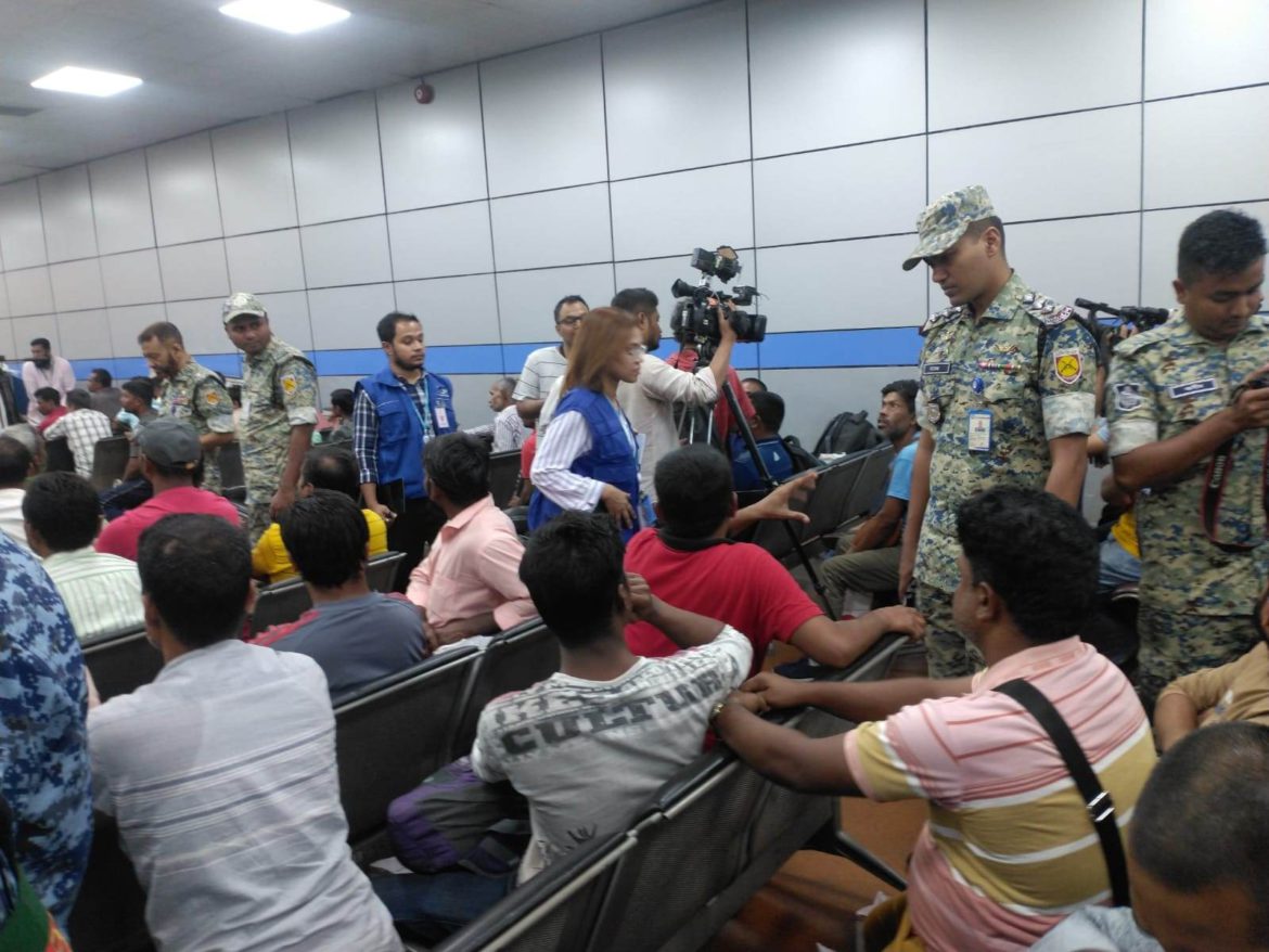 বিমানবন্দরে তাদের স্বাগত জানান প্রবাসী কল্যাণ ও বৈদেশিক কর্মসংস্থান মন্ত্রী ইমরান আহমদ।