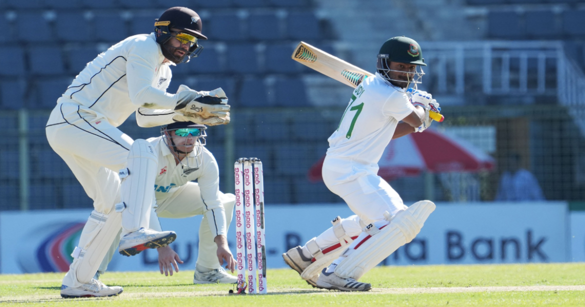 দিনের প্রথম বলেই টীম সাউদির শিকার হয়ে ফেরেন শরিফুল ইসলাম।
