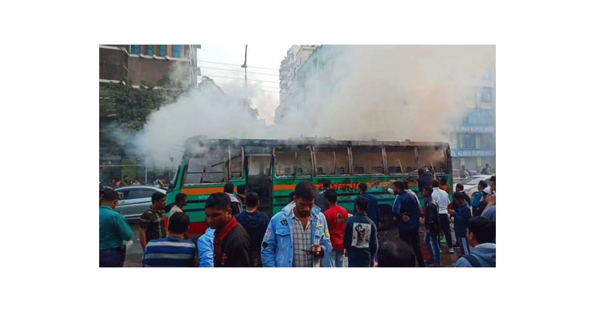 ধানমন্ডিতে বাসে আগুন দিয়েছে দুর্বৃত্তরা