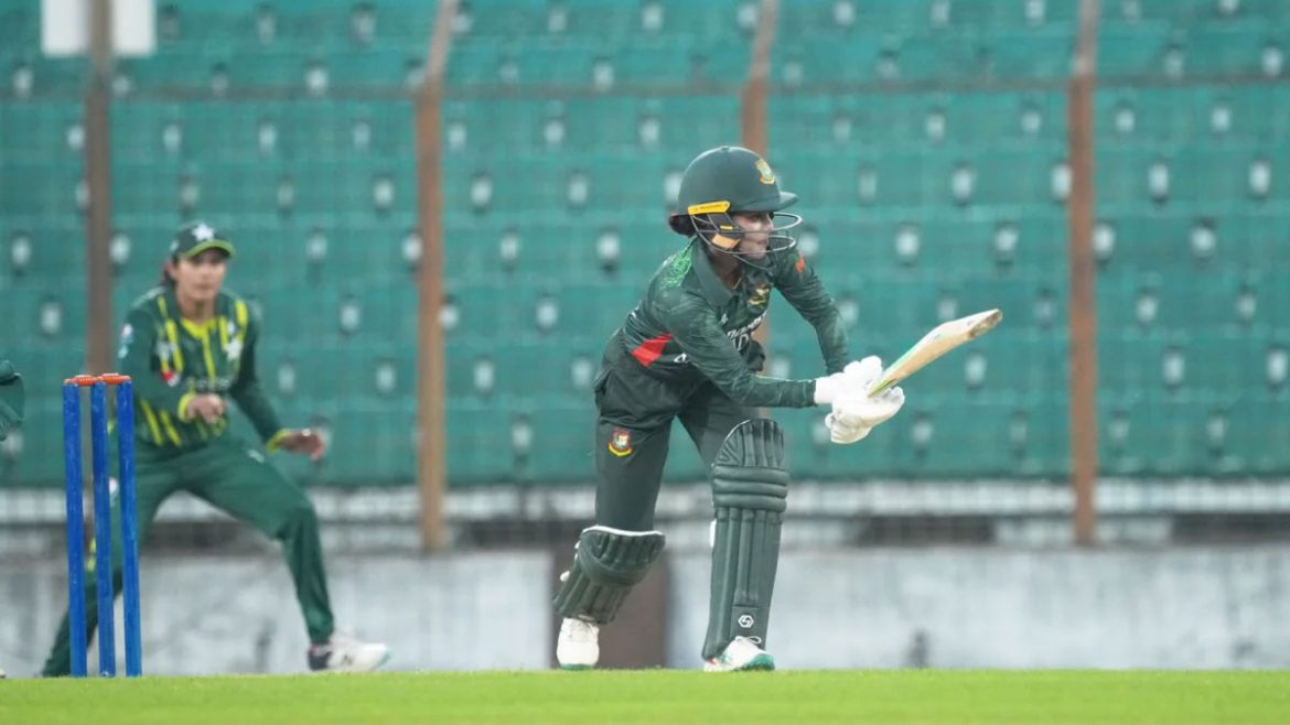 সুপার ওভারে শুরুতে ব্যাটিং করে পাকিস্তানের মেয়েরা। নাহিদার করা ওভারের প্রথম ৫ বলে ৭ রান তুলতেই ২ উইকেট হারায় পাকিস্তান। ৮ রানের লক্ষ্যে ব্যাট করতে নেমে বাউন্ডারি দিয়ে শুরু করেন সুবহানা মুস্তারি। কিন্তু পঞ্চম বলে তিনি আউট হওয়ার পর শেষ বলে বাংলাদেশের জয়ের জন্য প্রয়োজন হয় ২ রান।