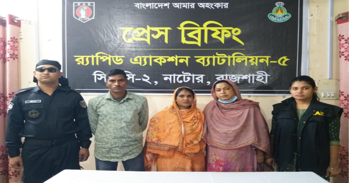 নাটোর র্যাব কোম্পানি অধিনায়ক সন্জয় কুমার সরকার জানান, গোয়েন্দা তথ্যের ভিত্তিতে উত্তর বড়গাছা এলাকার স্টেশন বাজারের সামনে সোমবার বিকালে চেকপোষ্ট পরিচালনা করা হয়। এসময় যাত্রীবেশী লালমনিরহাট সদর উপজেলার সাপটানা এলাকার বাসীন্দা জাহিদুল হাসান উজ্জ্বল(৪৫), মোছাঃ লিপি(৪২) ও মোছাঃ মুক্তা বেগম(৩০) নামে তিনজনকে গাজাসহ আটক করা হয়।