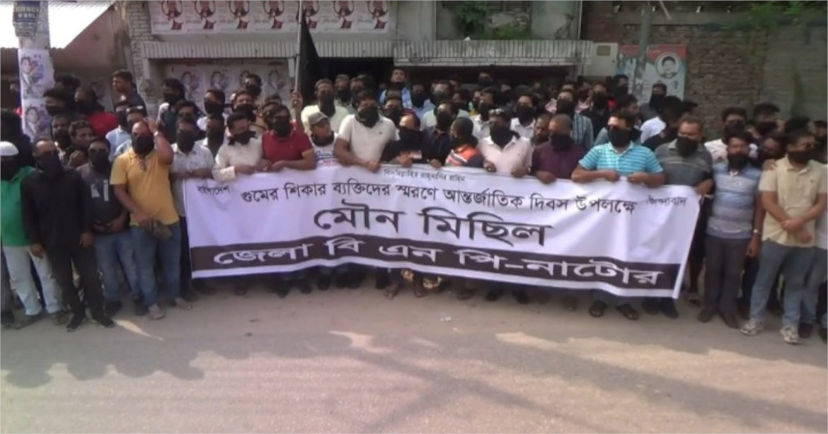 আন্তর্জাতিক গুম দিবস উপলক্ষে মুখে কালো কাপড় বেঁধে মৌন মিছিল করেছে নাটোর জেলা বিএনপি।