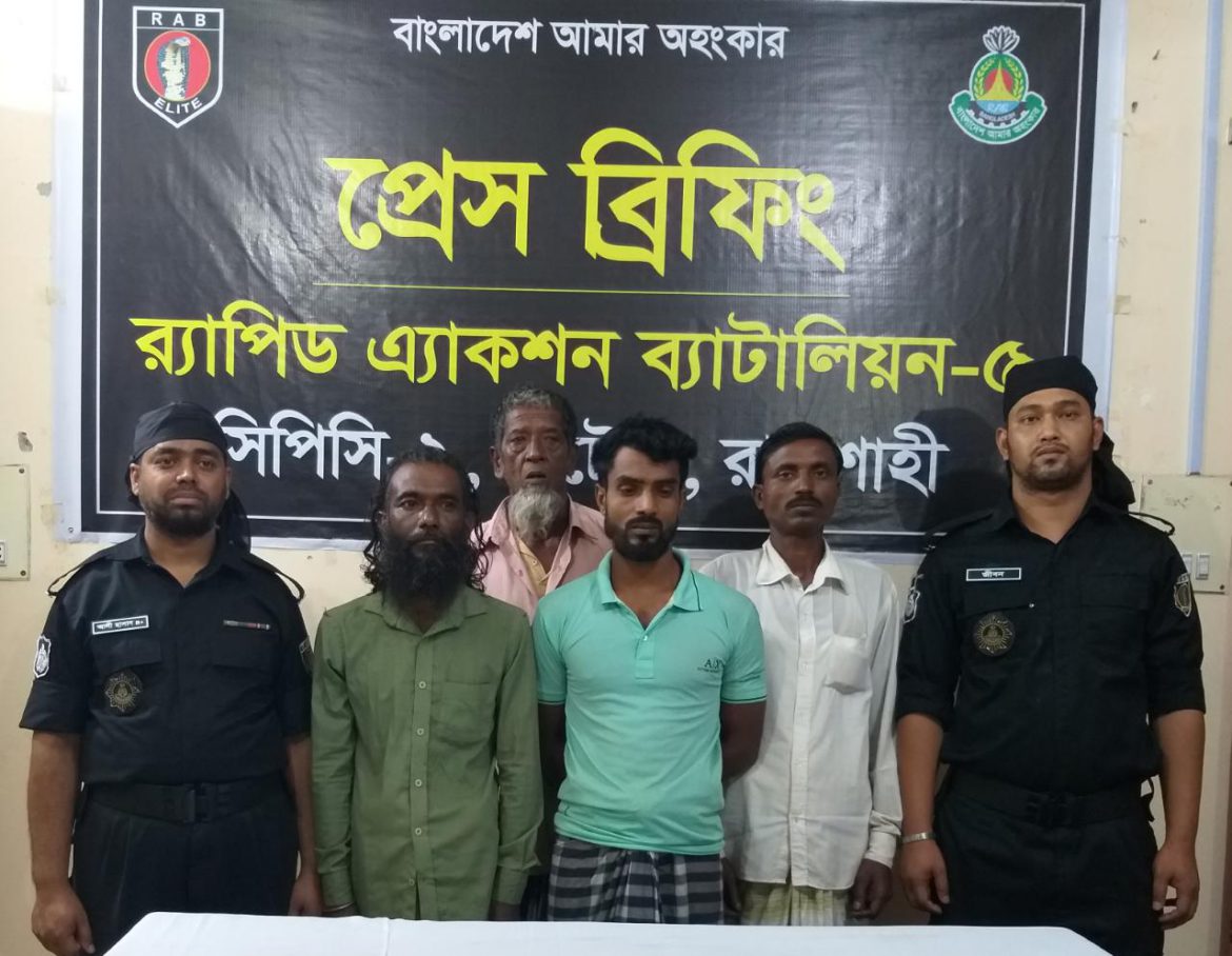 আটককৃতরা হলোনাটোর সদর উপজেলার সুলতানপুর পূর্ব পাড়া এলাকার মৃত আবুল হাসেমের ছেলে ফজলুর রহমান(৫৭), মৃত মোয়াজ্জেম হোসেনের ছেলে হযরত আলী (৫২), মকবুল হোসেনের ছেলে জিয়াউর রহমান (৩৩), মৃত মহরম আলীর ছেলে আব্দুল মজিদ(৩৭) ও শামীম হোসেনের স্ত্রী হাসি(৩০)
