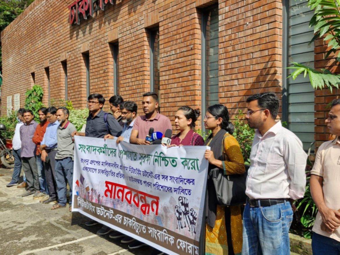 মানববন্ধনে আরও বক্তব্য দেন নিউজটাইম ডটনেটের বার্তা প্রধান সঞ্জয় দে, সহকারী বার্তা সম্পাদক মেহরিন জাহান, নিজস্ব প্রতিবেদক মেহনাজ মুন্নি প্রমুখ।