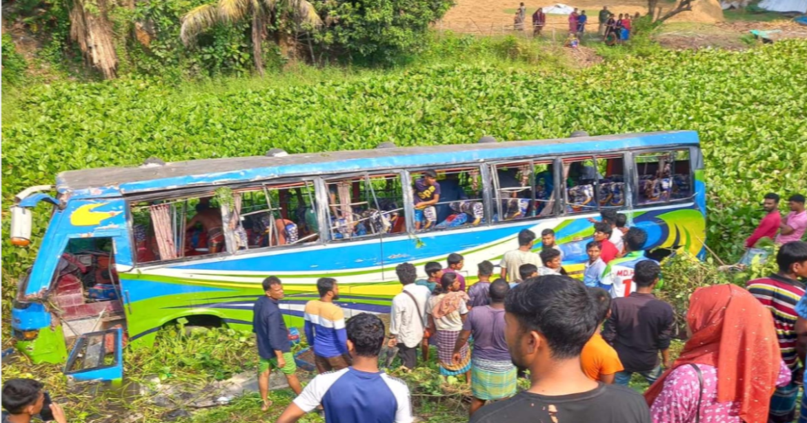নিয়ন্ত্রণ হারিয়ে বাস খাদে, আহত ১০