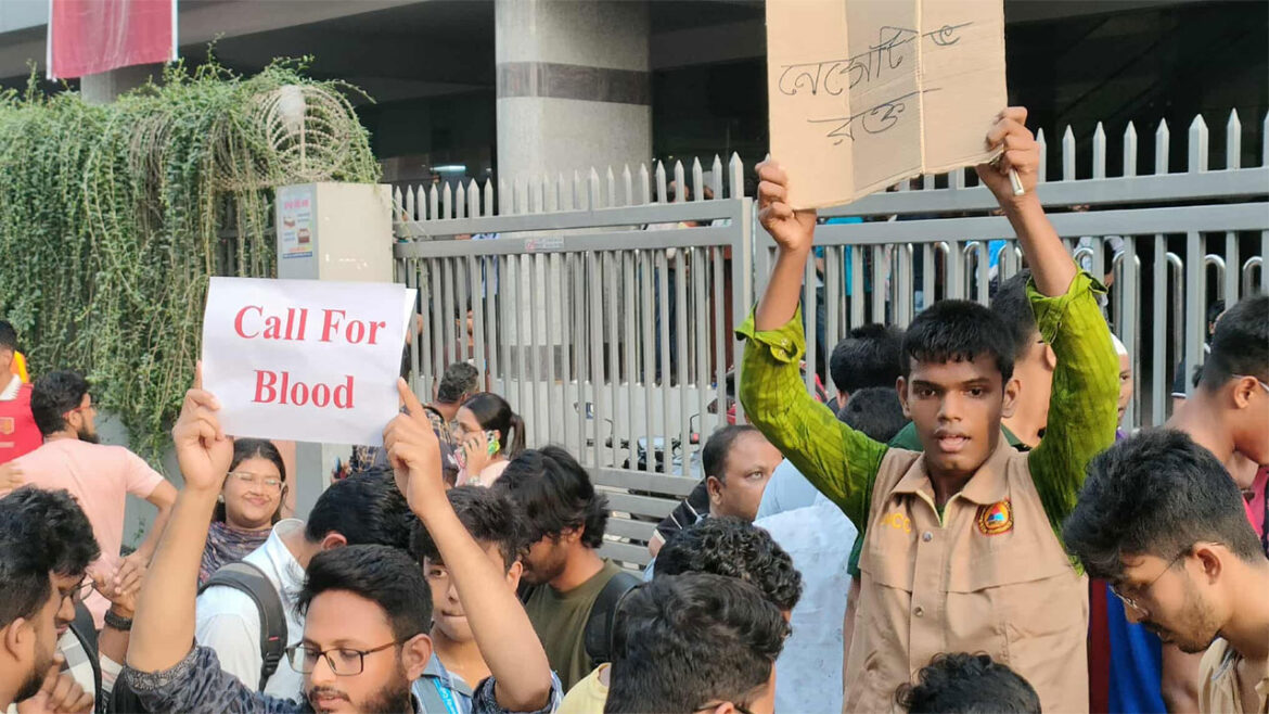 বিমান বিধ্বস্তের ঘটনায় দগ্ধ ও আহতদের রক্ত দিতে হাসপাতালে ভিড় করছেন স্বেচ্ছাসেবকরা। তবে বিপুলসংখ্যক রক্তদাতার মাঝেও সংকট দেখা দিয়েছে নেগেটিভ গ্রুপের রক্তের; যার জন্য চলছে হাহাকার।