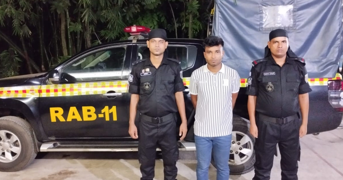 শনিবার (১৪ অক্টোবর) বেলা সাড়ে ১০টার দিকে বিষয়টি নিশ্চিত করেছেন র্যাব–১১ এর সিপিসি–৩ এর নোয়াখালী ক্যাম্পের কোম্পানি কমান্ডার লেফটেন্যান্ট মাহমুদুল হাসান। এর আগে, শুক্রবার (১৩ অক্টোবর) রাতে তাকে উপজেলার পৌর হাজীপুর এলাকায় অভিযান চালিয়ে তাকে গ্রেপ্তার করা হয়।