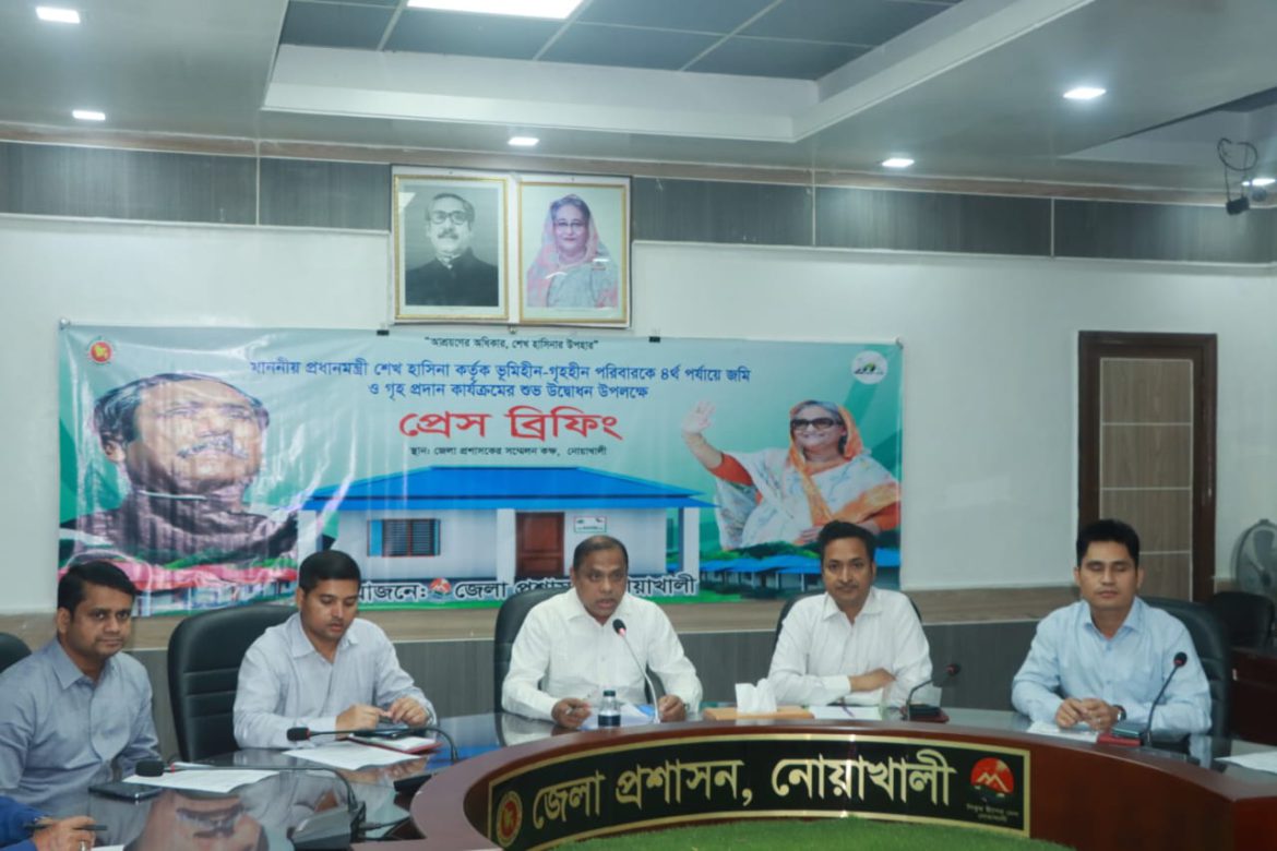 তিনি আরও বলেন, নোয়াখালী জেলায় ভূমিহীন ও গৃহহীন পরিবারের সংখ্যা প্রাথমিকভাবে ৬ হাজার ৩৯৭ টি নির্ধারণ করা হয়েছে, যার মধ্যে ৩ হাজার ৫২৭ টি পরিবারকে ইতোমধ্যে জমি সহ ঘর প্রদান করা হয়েছে।