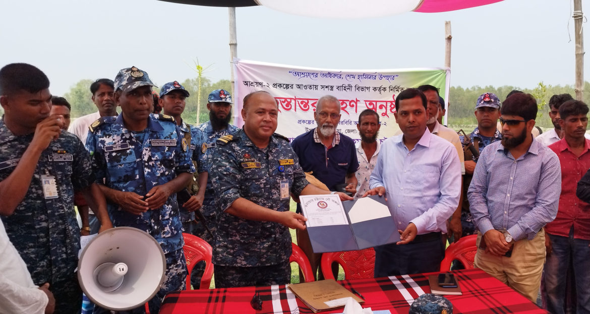 নোয়াখালীর হাতিয়ায় গৃহহীনদের জন্য নির্মিত ৬০টি ব্যারাক হাউজ উপজেলা প্রশাসনের কাছে হস্তান্তর করেছে নৌ-বাহিনী। মঙ্গলবার (১১ এপ্রিল) সকালে উপজেলার জাহাজমারা ইউনিয়নের বিরবিরি গ্রামে আনুষ্ঠানিক ভাবে এই আশ্রয়ণটি হস্তান্তর করা হয়।