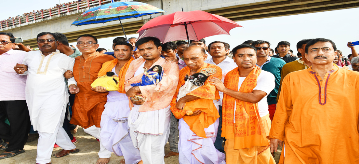 নৌপথে শ্রীশ্রী কান্তজীউ’র যুগল বিগ্রহ রাজবাড়ী যাচ্ছে