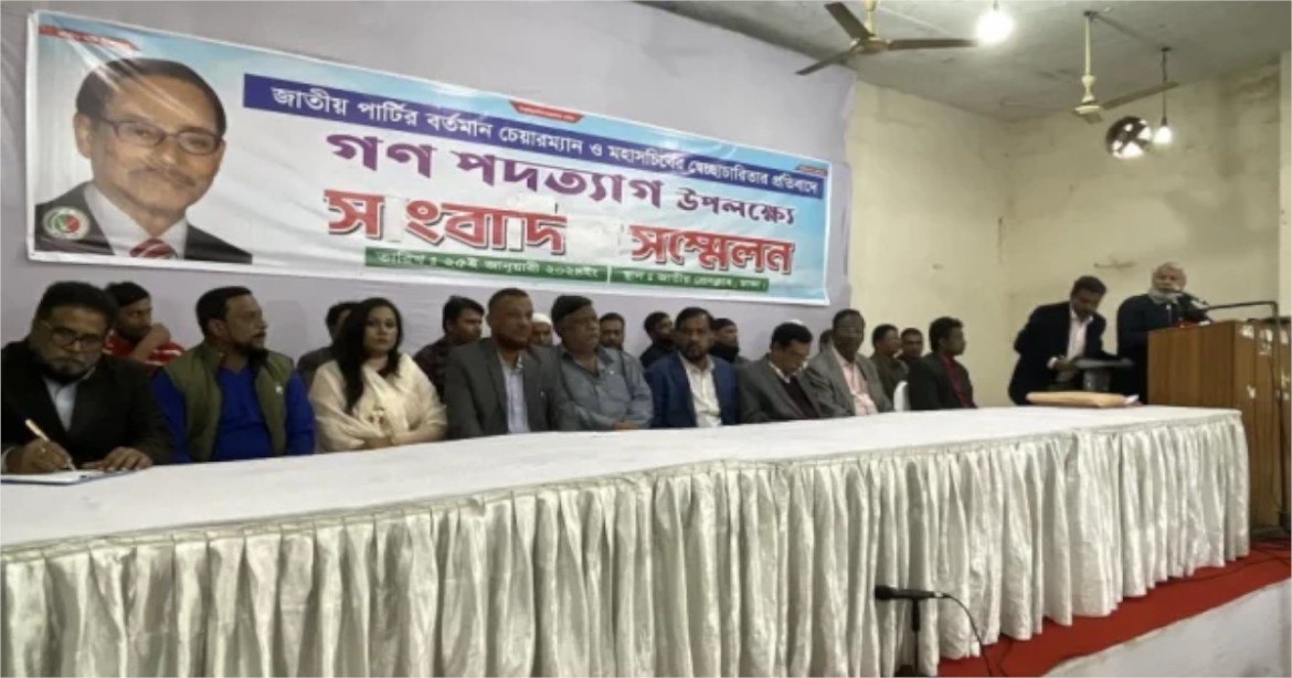 জাতীয় পার্টির চেয়ারম্যান জি এম কাদের ও মহাসচিব মুজিবুল হক চুন্নুর বিরুদ্ধে দুর্নীতি ও অগণতান্ত্রিক আচরণের অভিযোগ এনে, রাজধানীর ১০ থানার অনেক নেতাকর্মী গণপদত্যাগ করেছেন। এই সংখ্যা ৬৭১ বলে জানিয়েছেন দলটির প্রেসিডিয়াম সদস্য সফিকুল ইসলাম সেন্টু।
