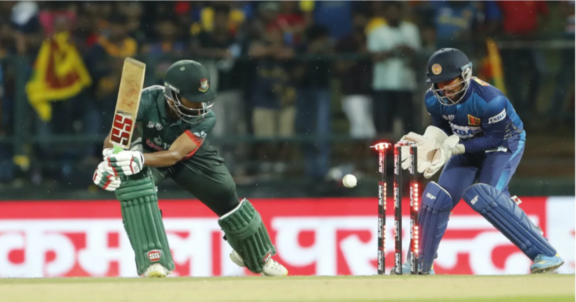 ১৬৫ রানের সহজ লক্ষ্য তাড়া করে, তাসকিন–শরিফুলের শিকার হন নিসাঙ্কা ও করুনারত্নে। কুশাল মেন্ডিসকে ফেরান সাকিব। তবে চতুর্থ উইকেটে সামারাবিক্রমা–আসালাঙ্কা‘র ৭৮ রানের জুটিতে জয়ের ভিত মজবুত হয় শ্রীলঙ্কার। ক্যারিয়ারে চতুর্থ ফিফটি করা সামারাবিক্রমাকে ফেরান মাহেদী হাসান। ধনাঞ্জয়াকে ফিরিয়ে সাকিবের শিকার দুই উইকেট।