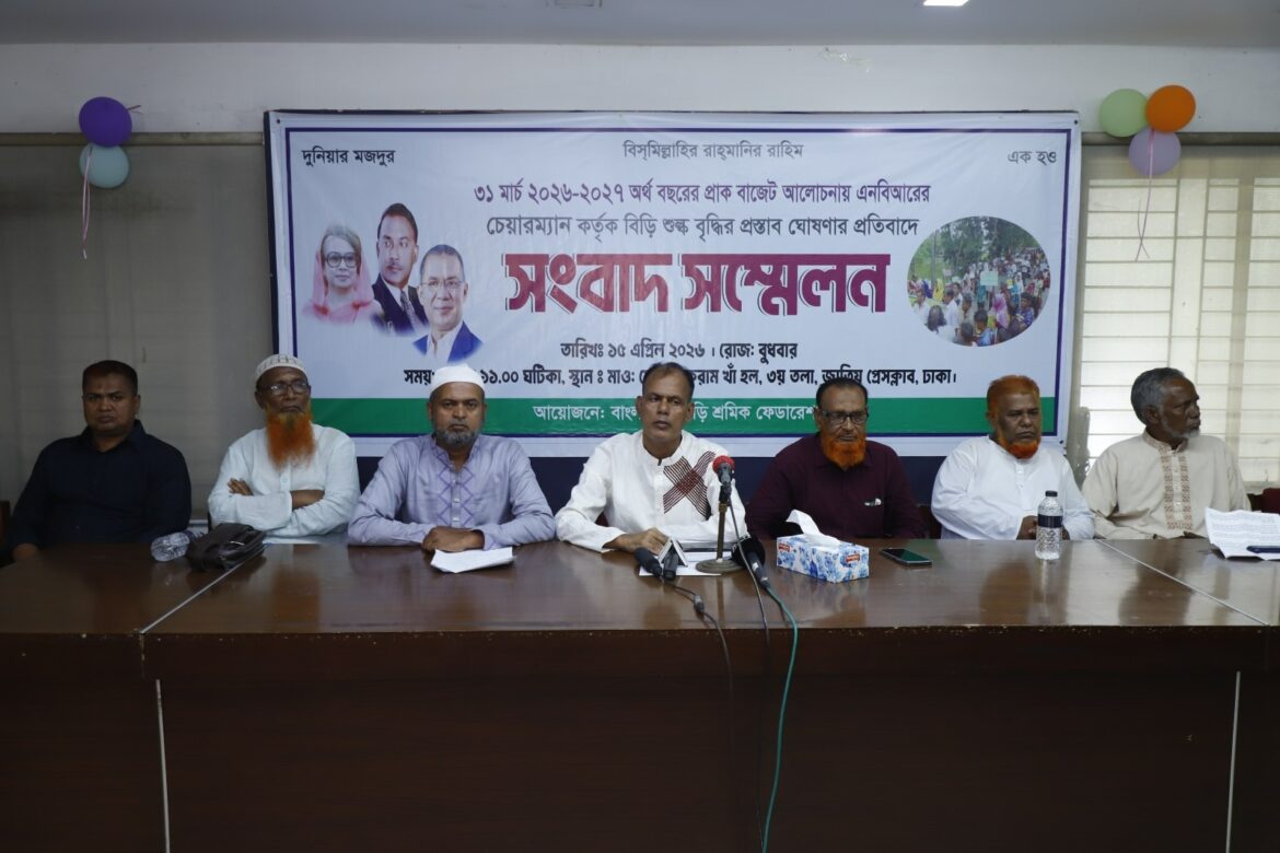 আসন্ন বাজেটে বিড়ি শিল্পে শুল্ক বৃদ্ধি না করা, বিড়ি ও সিটারেটের অগ্রিম আয়করের বৈষম্য দূর করাসহ পাঁচ দফা দাবিতে সংবাদ সম্মেলন করেছে বাংলাদেশ বিড়ি শ্রমিক ফেডারেশন।