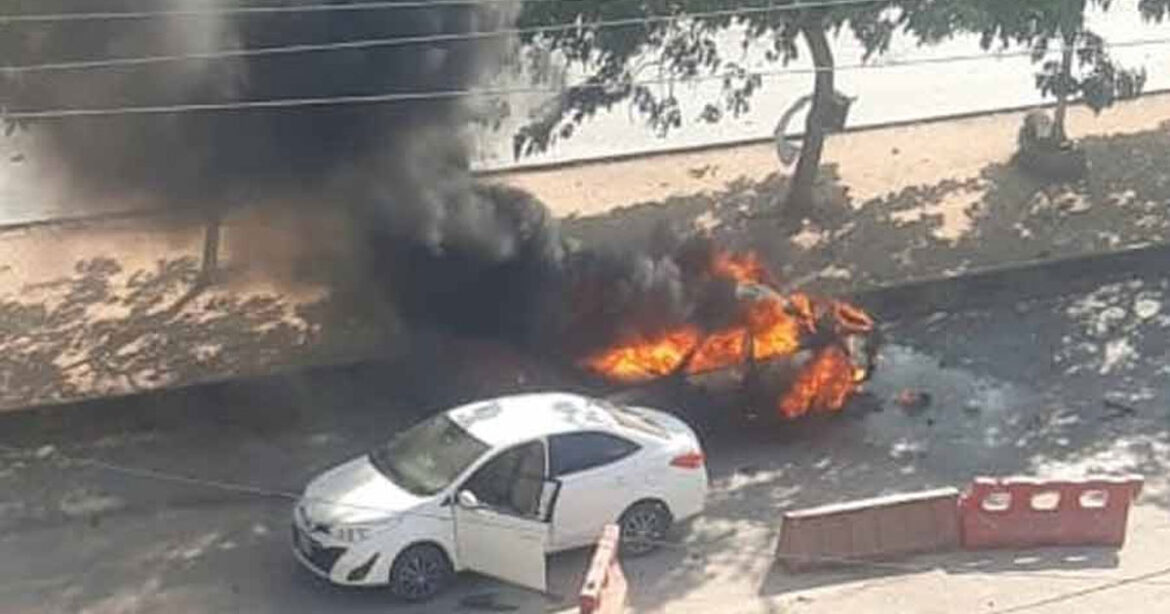 সামাজিক যোগাযোগমাধ্যমে ছড়িয়ে পড়া একটি ভিডিওতে দেখা গেছে, আদালতের গেটের পাশে একটি পুড়ে যাওয়া গাড়ি থেকে আগুন ও ধোঁয়ার কুণ্ডলী উঠছে। আশপাশে আতঙ্কিত মানুষদের দৌড়াতে দেখা যায় সে ভিডিও তে।
