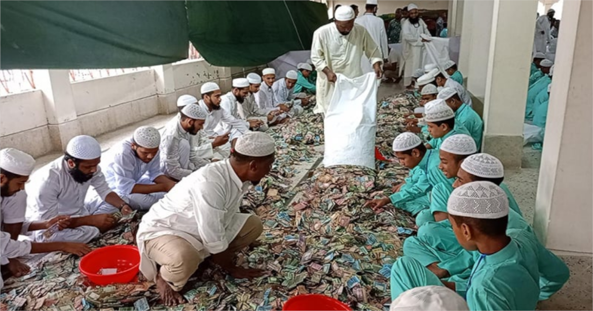 টাকা গণনার কাজে অংশ নিয়েছেন– কিশোরগঞ্জের অতিরিক্ত জেলা প্রশাসক (সার্বিক) মিজাবে রহমত, অতিরিক্ত জেলা প্রশাসক (রাজস্ব) মোহাম্মদ নাহিদ হাসান খান, অতিরিক্ত জেলা ম্যাজিস্ট্রেট জেসমিন আক্তার, রূপালী ব্যাংকের সহকারী মহাব্যবস্থাপক (এজিএম) রফিকুল ইসলাম, সিবিএ নেতা মো. আনোয়ার পারভেজসহ মাদরাসার ২৮৫ জন ছাত্র, ব্যাংকের ৮০ জন স্টাফ, মসজিদ কমিটির ৩৪ জন ও আইনশৃঙ্খলা বাহিনীর ১০ জন সদস্য।