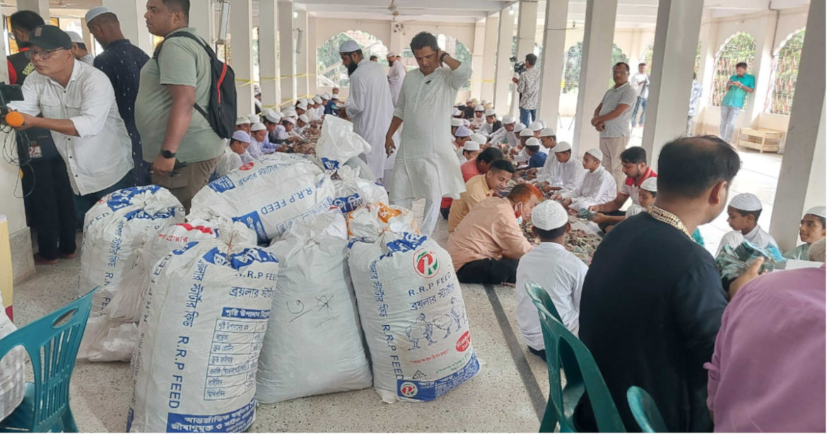 সকাল ৮টা থেকে দানবাক্সে পাওয়া ২৩ বস্তা টাকা গণনার কাজে অংশ নেয় হাফিজিয়া মাদ্রাসার শতাধিক শিক্ষার্থী, রুপালী ব্যাংকের ৫০ জন কর্মকর্তা–কর্মচারীসহ দুই শতাধিক মানুষ।
