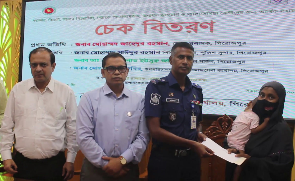 পিরোজপুরে ক্যান্সার, কিডনি, লিভার সিরোসিস, স্ট্রোক, প্যারালাইজড ও জন্মগত হৃদরোগীদের আর্থিক সহায়তা কর্মসূচির আওতায় ৭৫ জন রোগীদের মাঝে ৩৭ লক্ষ ৫০ হাজার টাকার আর্থিক অনুদানের চেক বিতরণ করা হয়েছে। সোমবার (১০ এপ্রিল) দুপুরে জেলা প্রশাসকের সম্মেলন কক্ষে জেলা প্রশাসন ও জেলা সমাজ সেবা অধিদপ্তরের আয়োজনে চেক বিতরণ অনুষ্ঠানে প্রধান অতিথি হিসেবে উপস্থিত থেকে চেক বিতরণ করেন জেলা প্রশাসক মোহাম্মদ জাহেদুর রহমান।