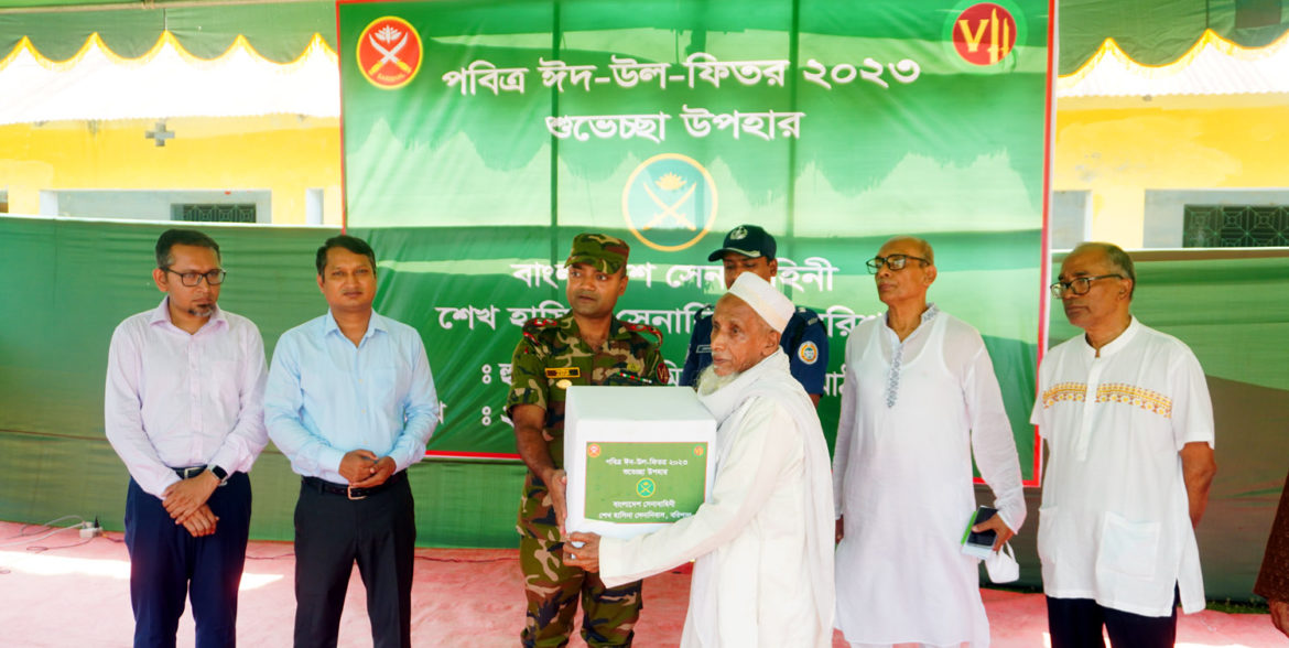 পিরোজপুরে গরীব, দুস্থ এবং অসহায়দের মাঝে ঈদ উপহার সামগ্রী বিতরণ করেছে বরিশাল শেখ হাসিনা সেনানিবাস। বৃহষ্পতিবার (২০ এপ্রিল) সকালে হুলারহাট মাধ্যমিক বিদ্যালয়ের মাঠ প্রাঙ্গণে বাংলাদেশ সেনাবাহিনী কর্তৃক পবিত্র ঈদ–উল–ফিতর উপলক্ষে এ উপহার সামগ্রী বিতরণ করা হয়।