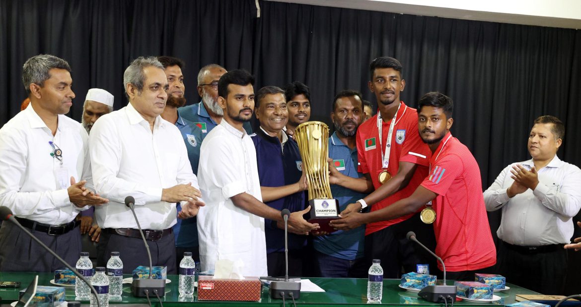 জাতীয় ক্রীড়া পরিষদে, খেলোয়াড়দের বরণ করেন যুব ও ক্রীড়া উপদেষ্টা আসিফ মাহমুদ সজীব ভূঁইয়া। নেপালকে ৪–১ গোলে হারিয়ে সাফ অনূর্ধ্ব–২০ চ্যাম্পিয়নশিপের শিরোপা জেতায় প্রত্যেকের জন্য ২৫ হাজার টাকা অর্থ পুরস্কার ঘোষণা করেন তিনি। দেশে চলমান বন্যা পরিস্থিতির কারণে, পুরস্কৃত অর্থ বন্যা কবলিত মানুষদের জন্য উৎসর্গ করেন সাফ চ্যাম্পিয়ন বাংলাদেশ অনূর্ধ্ব–২০ দলের খেলোয়াড়রা।