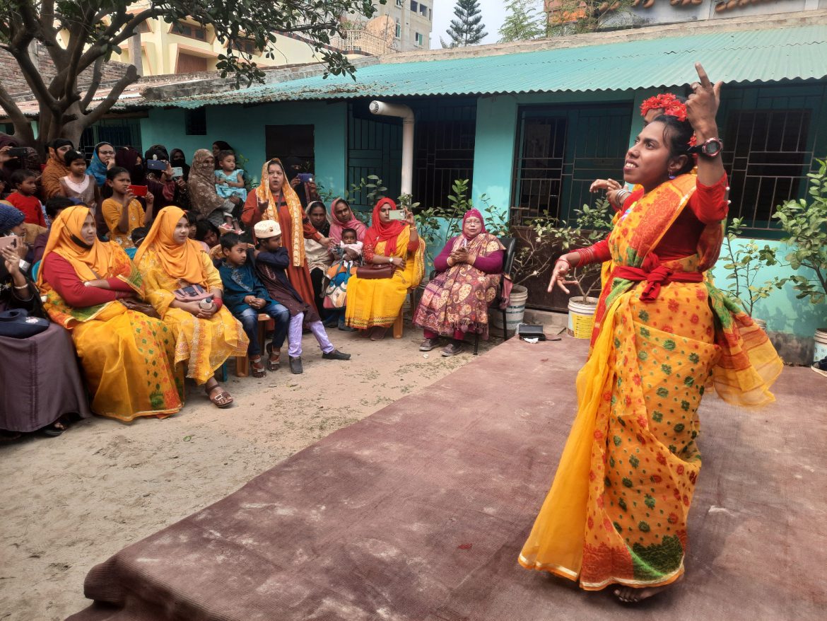 মঞ্চের ওপরে প্রতিবন্ধী শিক্ষার্থীর নাচ ও মঞ্চের নিচে শিক্ষকের নৃত্যকৌশল মিতালীতে জমজমাট বসন্ত বরণ অনুষ্ঠান। প্রতিবন্ধী শিক্ষার্থীদের মঞ্চে দারুণ উপস্থাপনা দেখে উপস্থিত সকলেই কড়তালিয়ে সাধুবাদ জানায়।