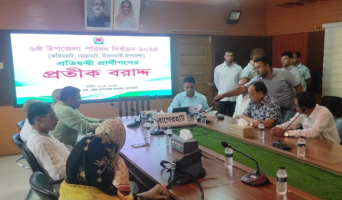 রিটার্নিং অফিসার ও বাগেরহাটের অতিরিক্ত জেলা প্রশাসক (সার্বিক) অরবিন্দ বিশ্বাস জানান, বৃহস্পতিবার দুপুরে আনুষ্ঠানিক ভাবে প্রার্থীদের মধ্যে প্রতীক বরাদ্দ করা হয়েছে। আগামী ২১ মে বাগেরহাটের ৩টি উপজেলায় ভোট গ্রহণ অনুষ্ঠিত হবে। আশা করছি সুষ্ঠ ও শান্তিপূর্ণ ভাবে নির্বাচন অনুষ্ঠিত হবে।