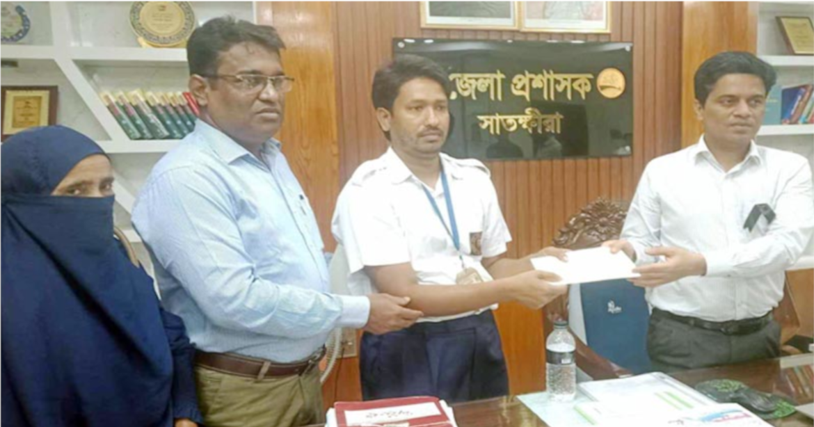 রবিবার (৬ আগস্ট) সকাল ১১টায় সাতক্ষীরার জেলা প্রশাসক হুমায়ুন কবীর উক্ত চেক আমিনুলের হাতে তুলে দেন।