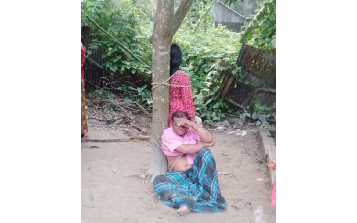 প্রবাসীর স্ত্রীর ঘরে ঢুকে অনৈতিক সম্পর্কের অভিযোগে হাতেনাতে আটক হয়েছেন মানিকগঞ্জের দৌলতপুর উপজেলার ধামশ্বর ইউনিয়ন বিএনপির দপ্তর সম্পাদক মো. সিরাজুল ইসলাম মুনজেল (৪৫)। স্থানীয়রা তাকে গাছের সঙ্গে বেঁধে রেখে সামাজিকভাবে বিচার বসিয়েছে।