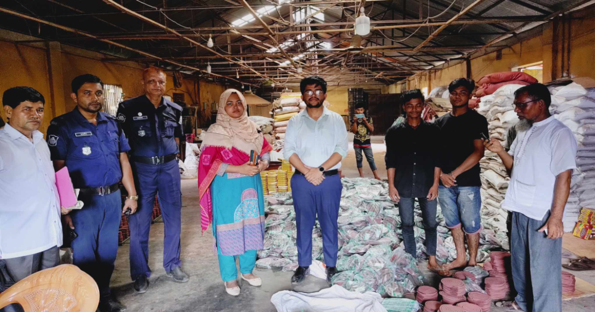 অবৈধভাবে ঝুঁকিপূর্ণ উপায়ে মশার কয়েল উৎপাদন ও বাজারজাতের অপরাধে বৃহস্পতিবার (১৭ আগস্ট) দুপুরে ফেনীর দাগনভূঞায় উপজেলার মোল্লাঘাটার মেসার্স রূপালী কেমিক্যালস নামে একটি প্রতিষ্ঠানে অভিযান চালিয়ে ৩০ হাজার টাকা জরিমানা করেছে ভ্রাম্যমাণ আদালত।