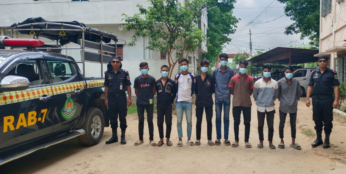 গ্রেফতাররা হলেন: মো. আল-আমীন (১৯), মেহেদী হাসান রাব্বি (১৯), মিনহাজ মিয়া (১৯), শহিদুল ইসলাম (২০), মনসুর আহমেদ (১৯), আশরাফুল ইসলাম (১৯), নাজমুল হাসান নাহিদ (১৯) ও আদিব আলি সোহান (২০)। গ্রেফতাররা সবাই বিডিবি-১০ নামের একটি গ্যাংয়ের সদস্য।