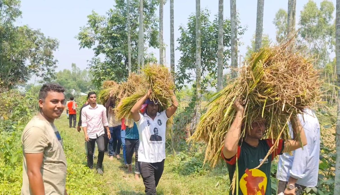 ফেনীতে কৃষকের ধান পৌঁছে দিল ছাত্রলীগ