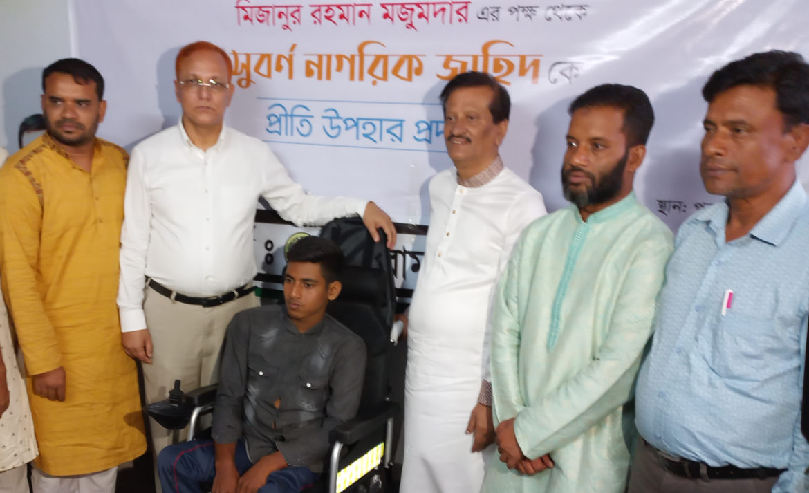 শারীরিক প্রতিবন্ধকতাকে জয় করে এসএসসি পরীক্ষায় অংশ নেয়া ফেনীর পরশুরামের জাহিদুল ইসলামের পাশে দাঁড়িয়েছেন বিশিষ্ট সমাজসেবক ও পোর্টল্যান্ড গ্রুপের চেয়ারম্যান মিজানুর রহমান। জাহিদুলকে চলাচলের জন্য একটি অত্যাধুনিক মডেলের হুইল চেয়ার উপহার দিয়েছেন।