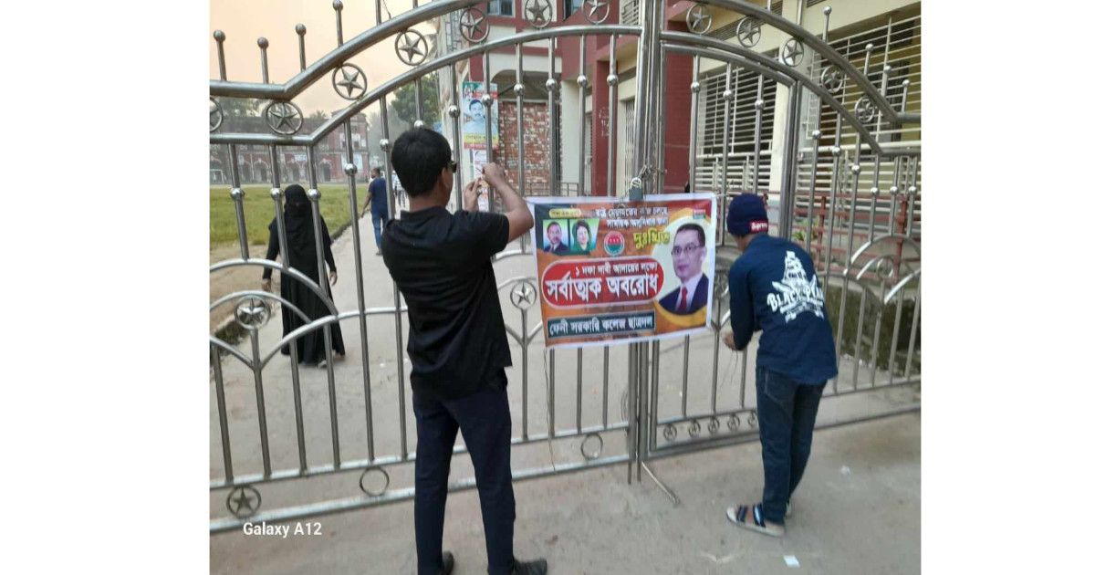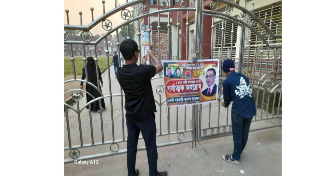 জানা যায়, সোমবার (০৮ নভেম্বর) বুধবার সকাল ৭টার দিকে ফেনী সরকারী কলেজের প্রধান ফটকে তালা লাগিয়ে একটি ব্যানার ঝুলিয়ে দেয় ছাত্রদল নেতারা। ওই ব্যানারে লিখা ছিলো, ‘রাস্ট্র মেরামতের কাজ চলছে; সাময়িক অসুবিধার জন্য দু:খিত। ১ দফা দাবি আদায়ে সর্বাত্মক অবরোধ; ফেনী সরকারী কলেজ ছাত্রদল’।