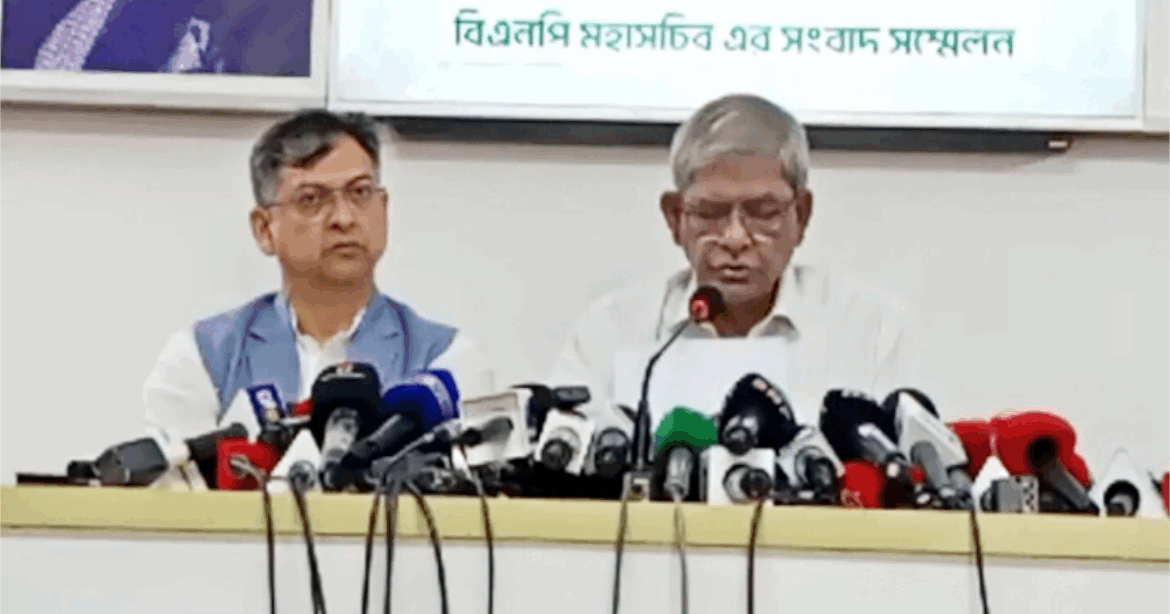 ‘জুলাই ঘোষণাপত্র‘ ও প্রধান উপদেষ্টার ‘নির্বাচনী‘ ঘোষণার আনুষ্ঠানিক প্রতিক্রিয়া জানাতে এ সংবাদ সম্মেলনের আয়োজন করে বিএনপি।