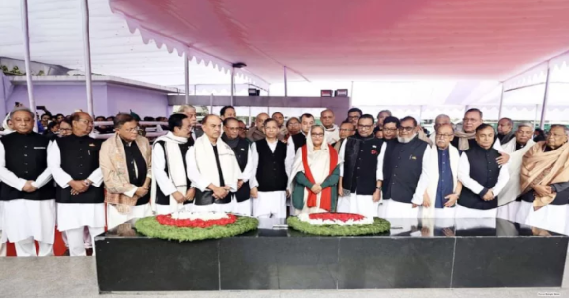 জাতির পিতা বঙ্গবন্ধু শেখ মুজিবুর রহমানের প্রতিকৃতিতে শ্রদ্ধা জানিয়েছেন প্রধানমন্ত্রী শেখ হাসিনা ও তার নবগঠিত মন্ত্রিসভার সদস্যরা।